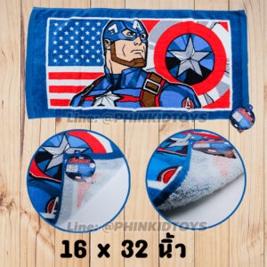 ผ้าขนหนูผืนเล็ก ผ้าเช็ดผม ผ้าเช็ดหน้า ลายกัปตันอเมริกา Captain America