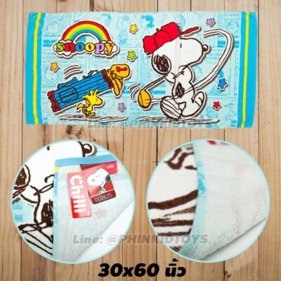ผ้าขนหนูลายลิขสิทธิ์แท้ ลาย Snoopy สนูปปี้ ขนาด 30×60 นิ้ว ลาย03 สีฟ้า